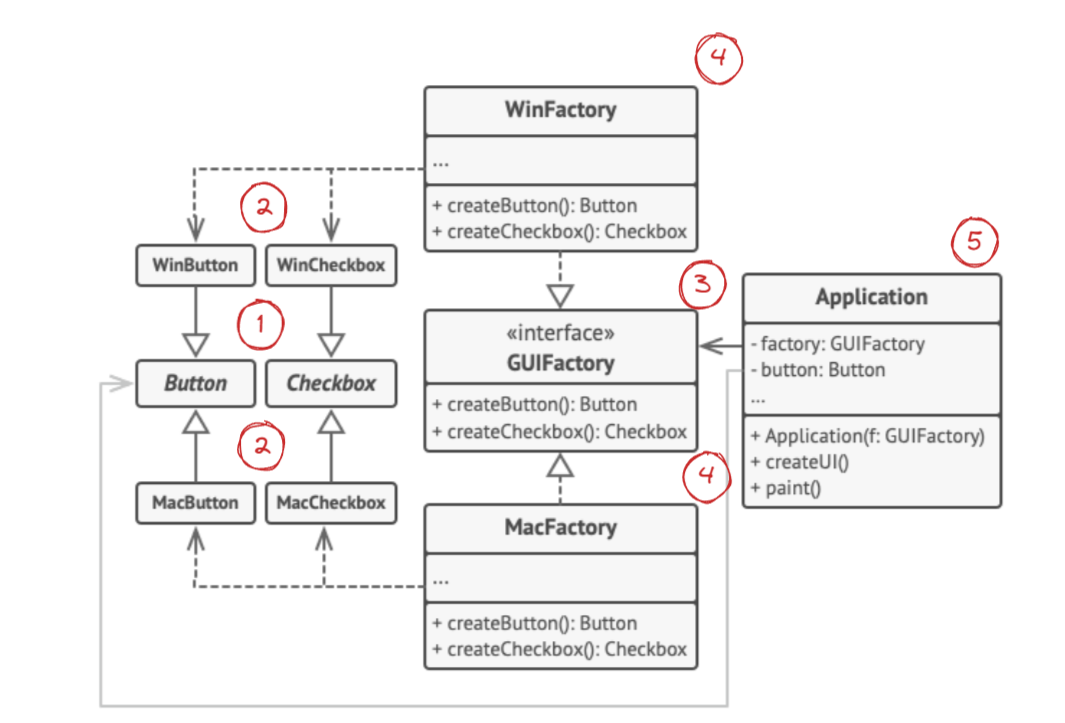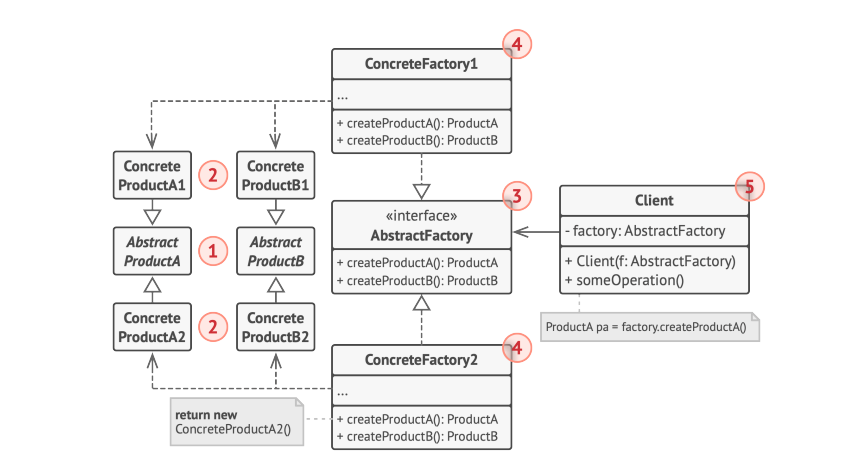 Abstract Factory Interface: The Abstract Factory interface declares a set of methods to create each of the abstract products. This interface allows you to create different types of products without exposing their concrete implementations.