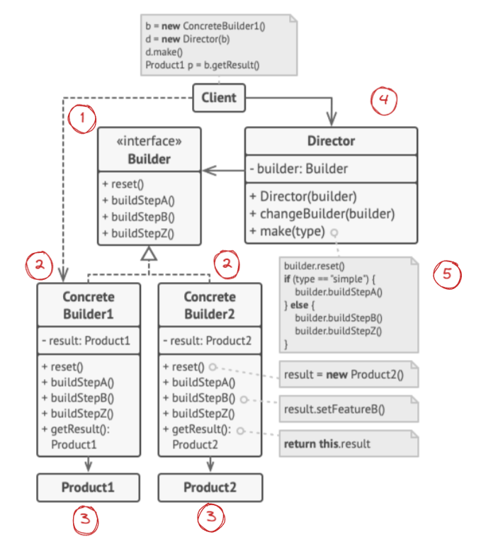 Concrete Builders: Concrete Builders provide different implementations of the construction steps defined in the Builder interface. They may produce products that do not necessarily follow a common interface or belong to the same class hierarchy.